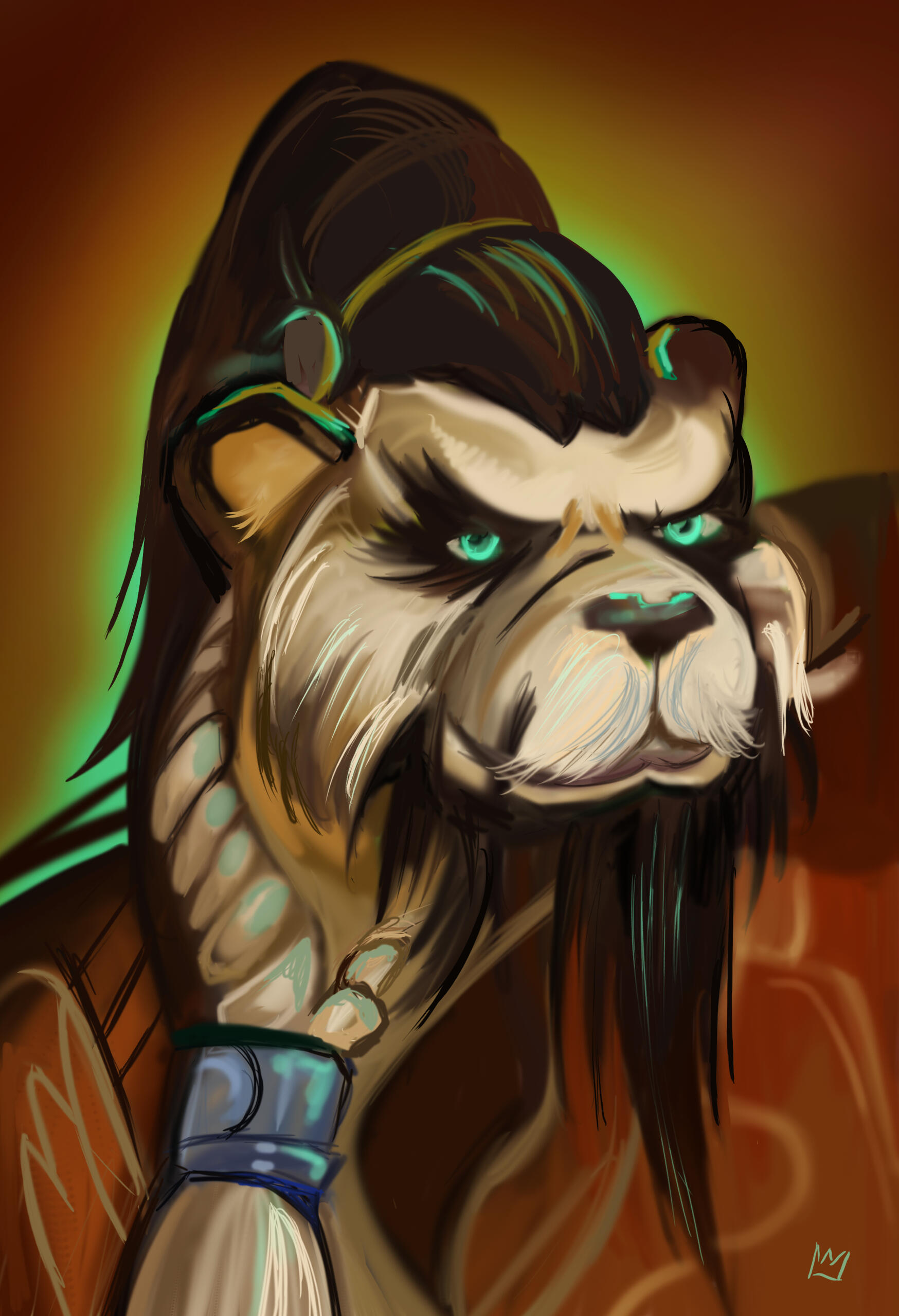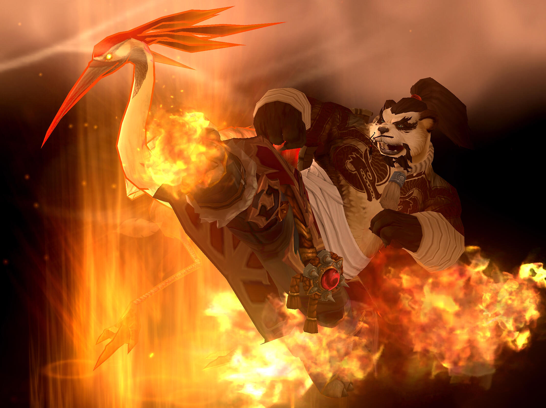 Firebender: Fellow Pandaren would recognize the red jade crane necklace he wears, a gift from the temple of Chi-Ji and a mark of his service to it